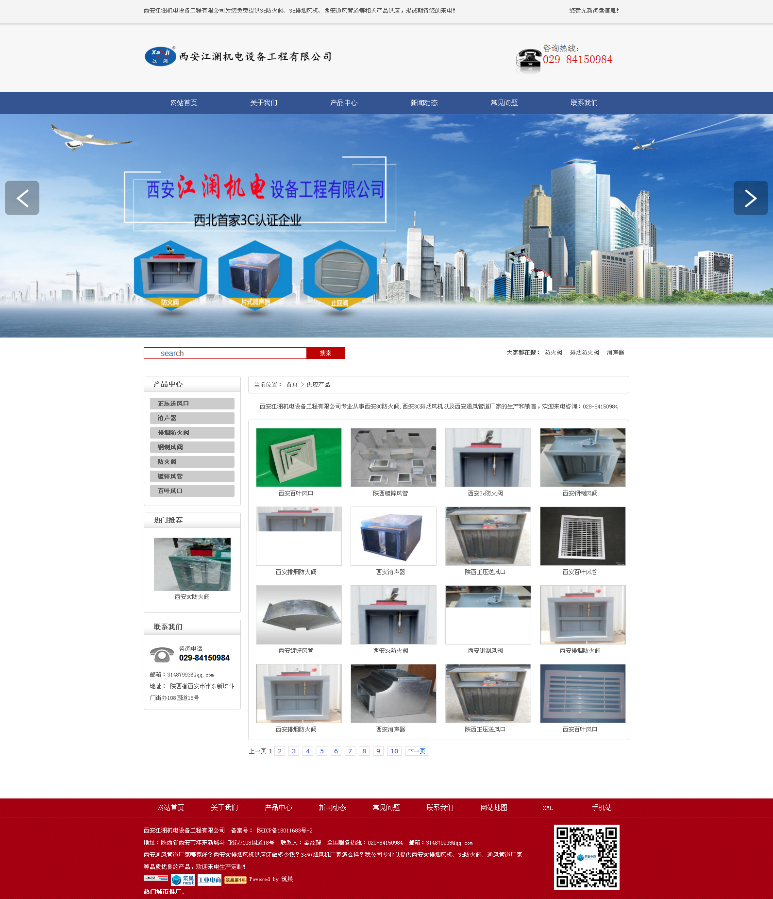西安江澜机电设备工程有限公司(以下简称为“西安江澜”)成立于2008年,是集机电、通风、消防排烟和空调工程施工,各系统设备的生产、销售为一体的综合性公司,注册资金为壹仟万元整,具有专业的承包能力,公司拥有工程技术人员及管理人员共40余人,拥有技术精湛的生产施工人员150余人。拥有完备的施工机械、设备及自动化生产线多条。 西安江澜具有专门的生产基地,占地10亩,有四个大型生产车间,厂里配备全自动通风管道生产七线两条,全自动数控异形件生产线两条,通风管道的日产量可达到3000至5000平米,2013年荣获三星基地通风系统指定加工商;主要产品有散流器、百叶风口、格栅风口、条形风口,排烟阀、防火阀、蝶阀、电动调节阀,消声器、消声弯头、静压箱,轴流风机,混流风机,消防高温排烟风机,防爆风机及各类电缆桥架等;产品已销往西北各地,深受用户好评。本公司防火排烟阀门等产品已于2016年初通过了国家3C强制认证,为西北地区首家通过3C强制认证的企业。