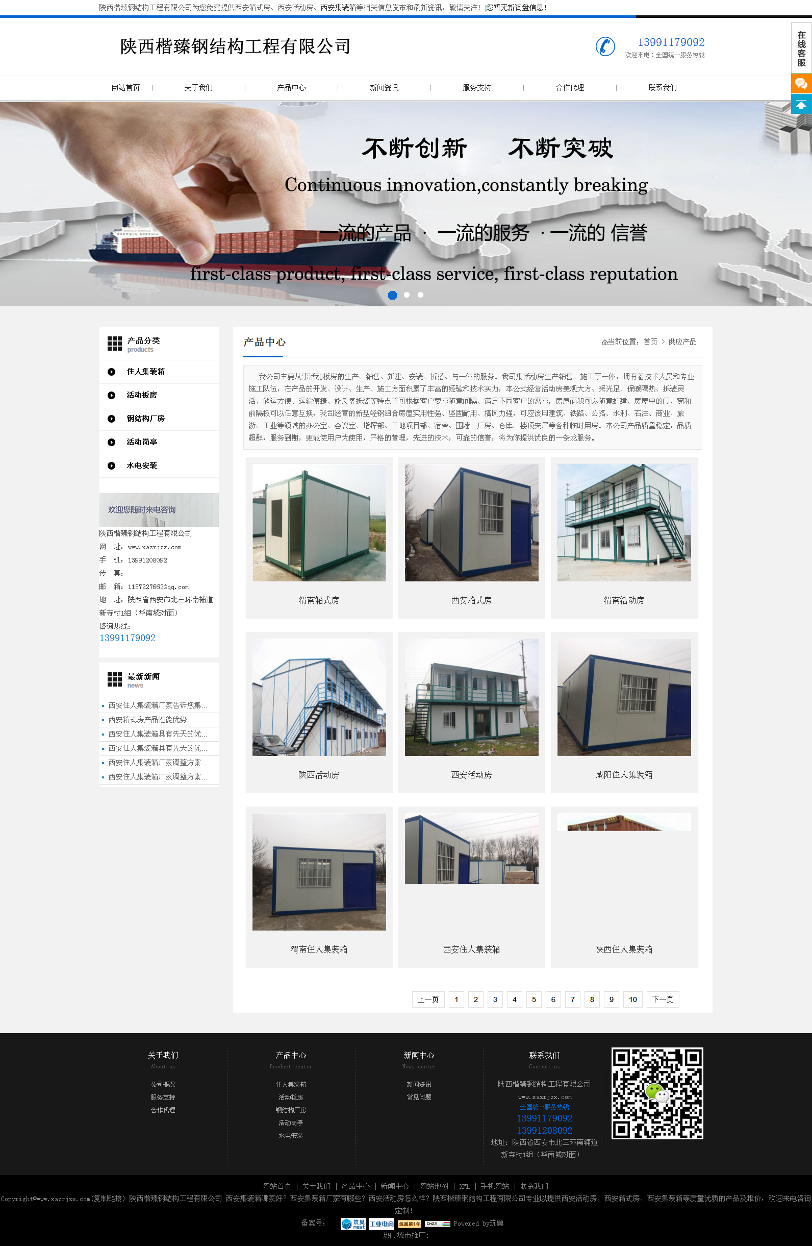 陕西楷臻钢结构工程有限公司主要从事活动板房的生产、销售、新建、安装、拆搭、与一体的服务。 我司集活动房生产销售、施工于一体,拥有着技术人员和专业施工队伍,在产品的开发、设计、生产、施工方面积累了丰富的经验和技术实力,本公式经营活动房美观大方、采光足、保暖隔热、拆装灵活、储运方便、运输便捷、能反复拆装等特点并可根据客户要求随意间隔、满足不同客户的需求,房屋面积可以随意扩建、房屋中的门、窗和前隔板可以任意互换,我司经营的新型轻钢组合房屋实用性强、坚固耐用、搞风力强,可应该用建筑、铁路、公路、水利、石油、商业、旅游、工业等领域的办公室、会议室、指挥部、工地项目部、宿舍、围墙、厂房、仓库、楼顶夹层等各种临时用房。 本公司产品质量稳定,品质超群,服务到期,更能使用户为使用,严格的管理,先进的技术,可靠的信誉,将为你提供优良的一条龙服务。