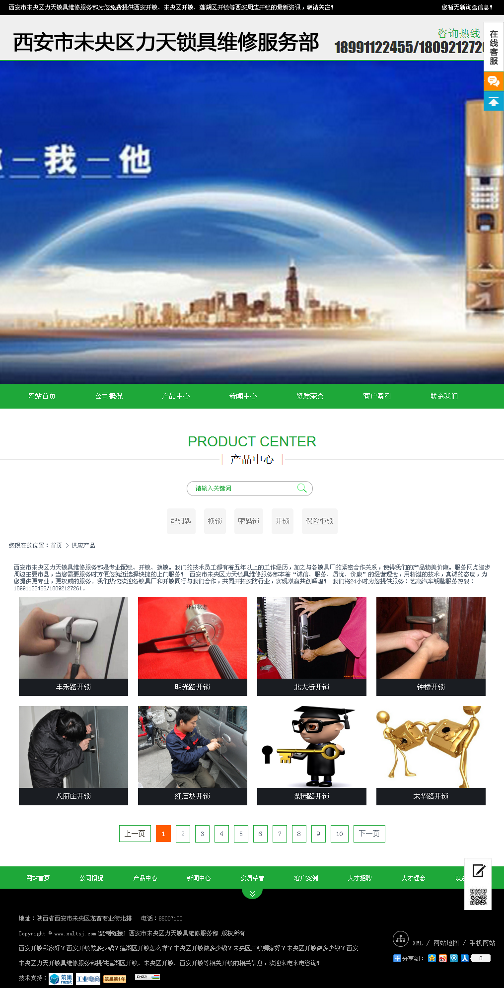西安市未央区力天锁具维修服务部是专业配锁、开锁、换锁。我们的技术员工都有着五年以上的工作经历,加之与各锁具厂的紧密合作关系,使得我们的产品物美价廉。服务网点遍步周边主要市县,当您需要服务时方便您就近选择快捷的上门服务! 西安市未央区力天锁具维修服务部本着“诚信、服务、质优、价廉”的经营理念,用精湛的技术,真诚的态度,为您提供更专业,更权威的服务。我们热忱欢迎各锁具厂和开锁同行与我们合作,共同开拓安防行业,实现双赢共创辉煌!